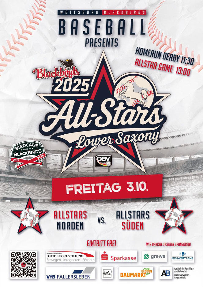 Save the Date! Am 03. Oktober ist es soweit: Die Wolfsburg Blackbirds richten das Allstargame des Niedersächsischen Baseball- und Softballverbands (NBSV) aus – und das erstmals im neu errichteten Birdcage! Wann? 11:30 Uhr – Home Run Derby 13:00 Uhr – Spielbeginn Erlebt die besten Baseballspieler aus den Vereinen des Verbands in einem besonderen Showdown auf höchstem Niveau! Alle Interessierten sind herzlich eingeladen! Kommt vorbei, genießt spannende Plays, starke Schläge und beste...