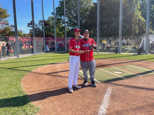 Den Auftakt des Tages bildete ein Homerun-Contest, bei dem sich die besten Hitter der Verbands messen konnten. Die Krone sicherte sich dieses Jahr Kodai Eto von den Gastgebern – mit starken fünf Homeruns holte er den Titel nach Wolfsburg und sorgte gleich zu Beginn für Begeisterung unter den Zuschauern.